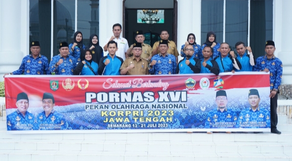 MEDIASELEKTIF.COM - Sekretaris Daerah (Sekda) Kabupaten Asahan Drs. John Hardi Nasution M. Si melepas 6 orang Atlet DPK KORPRI Asahan yang tergabung dalam Kontingen DPP KORPRI Sumatera Utara, untuk mengikuti Pekan Olahraga Nasional (Pornas) KORPRI ke-XVI di Semarang, Jawa Tengah, Selasa (11/7/2023).