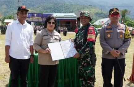 MEDIASELEKTIF.COM - Bupati Karo, Cory Sriwaty Sebayang bersama Wakil Bupati Karo, Theopilus Ginting ikuti upacara pembukaan TNI Manunggal Membangun Desa (TMMD) Ke-119 TA 2024 di Laubaleng, Kabupaten Karo, Sumatera Utara, Selasa (20/02/2024).