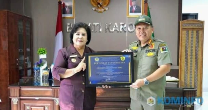 Kabupaten Karo berhasil meraih predikat ke-3 terbaik Pengelolaan dan pemanfaatan Dana Bagi Hasil Cukai Hasil Tembakau (DBH CHT) Bidang Penegakan Hukum Tahun 2023. Penghargaan ini kemudian diserahkan langsung oleh Kepala Satuan Polisi Pamong Peraja Kab. Karo, Gelora Fajar Purba, SH, MH kepada Bupati Karo Cory Sriwaty Sebayang bertempat di ruang kerja Bupati Karo, Jalan Jamin Ginting, Kabanjahe, Kabupaten Karo, Sumatera Utara, tanggal 22 April 2024.